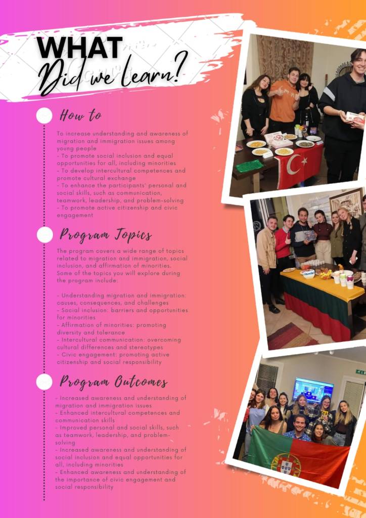 The program provided an excellent opportunity for young people from diverse cultural backgrounds to come together and engage in a range of activities. The participants took part in various workshops, group discussions, and team-building exercises that allowed them to develop their leadership skills, make new friends, and appreciate cultural differences.